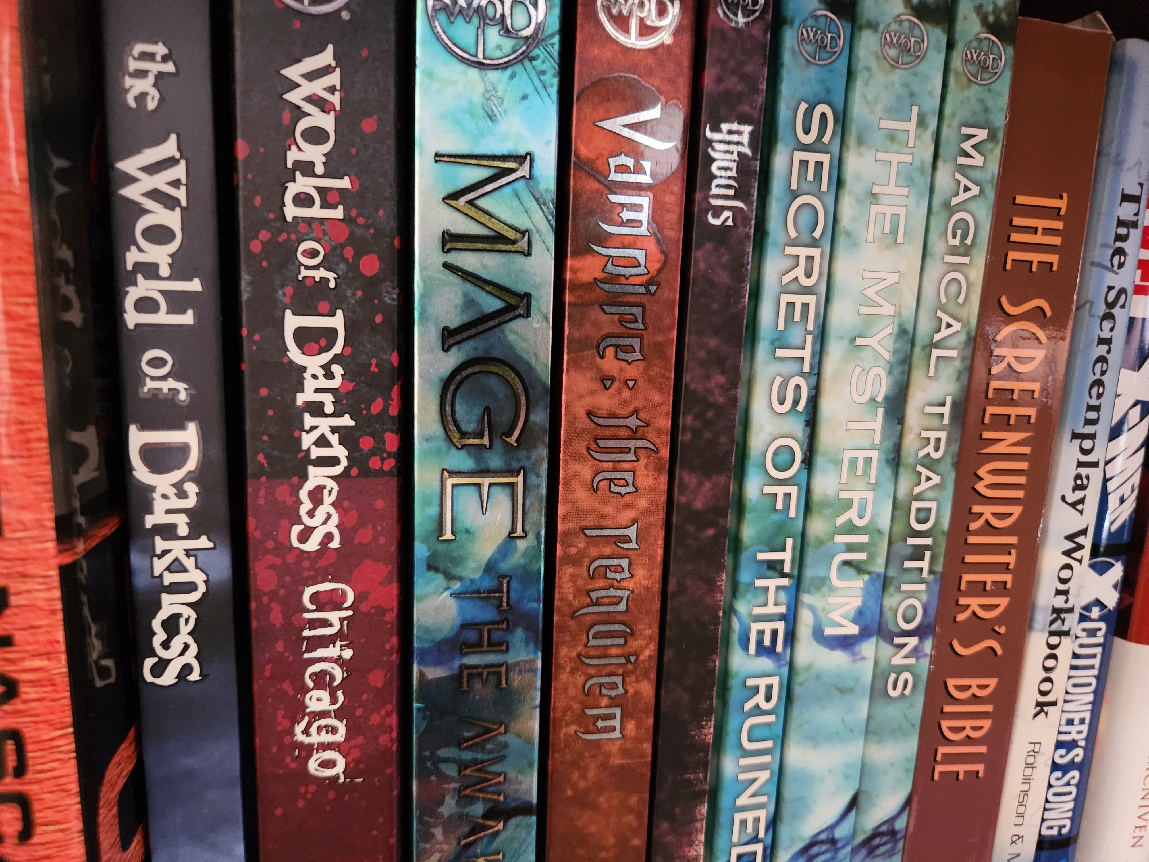 I don’t roleplay anymore, but I still have a shelf full of White Wolf sourcebooks.